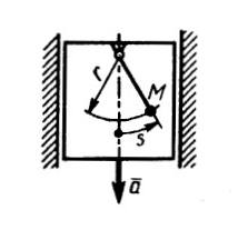 Точка М маятника движется по окружности радиуса r = 0,1 м согласно уравнению s = 0,01 sin 10t в лифте, опускающемся с постоянным ускорением а = 0,1 м/с2. Определить модуль абсолютного ускорения точки М в момент времени, когда координата s = 0. (Ответ 0)