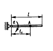 Однородный тонкий стержень длиной l = 1,5 м вращается с угловым ускорением ϵ во­круг оси, перпендикулярной стержню. Найти размер l1, определяющий положение центра А приведения сил инерции, относительно кото­рого главный момент сил инерции равен нулю. (Ответ 1)