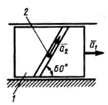 Ползун 1 движется по горизонтальным направляющим с постоянным ускорением а1 = 4 м/с2. Точка 2 перемещается по отношению к ползуну с ускорением а2 = 3 м/с2. Опреде­лить абсолютное ускорение точки. (Ответ 6,08)