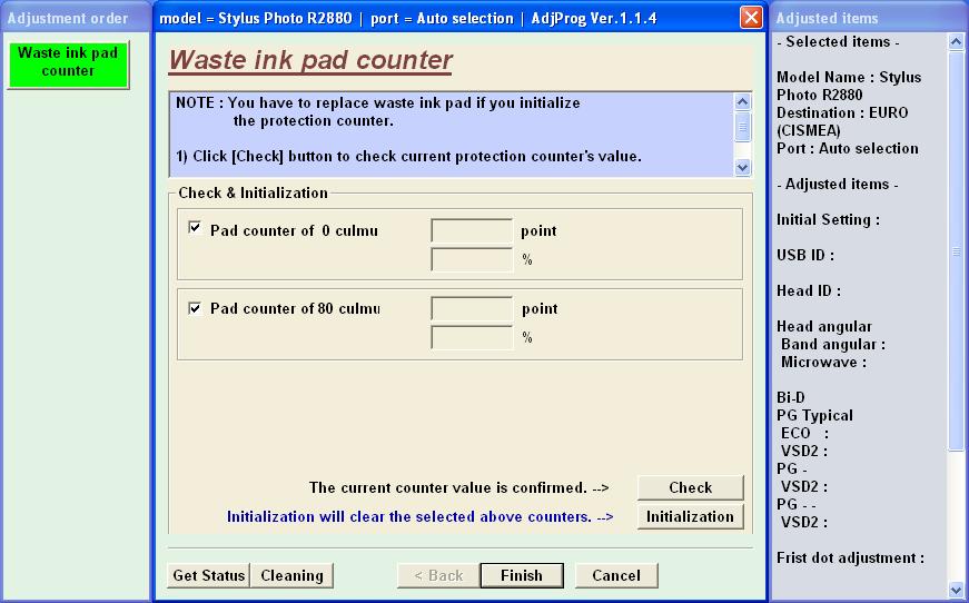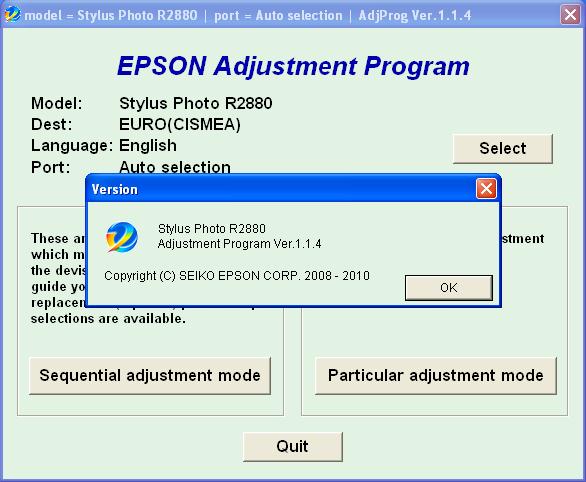 Epson Stylus Photo R2880 (EURO, CISMEA) Ver.1.1.4 Service Adjustment Program — это сервисная программа для указанной модели принтера, программа позволяет сбросить счетчик памперса (абсорбер), прописывать ID печатающей головки, делать инициализацию принтера и другие функции.