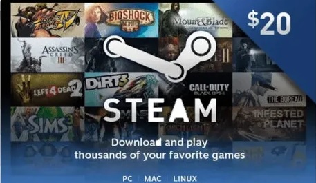 Данный товар Steam Wallet пополнит счет стима на $20 долларов.
