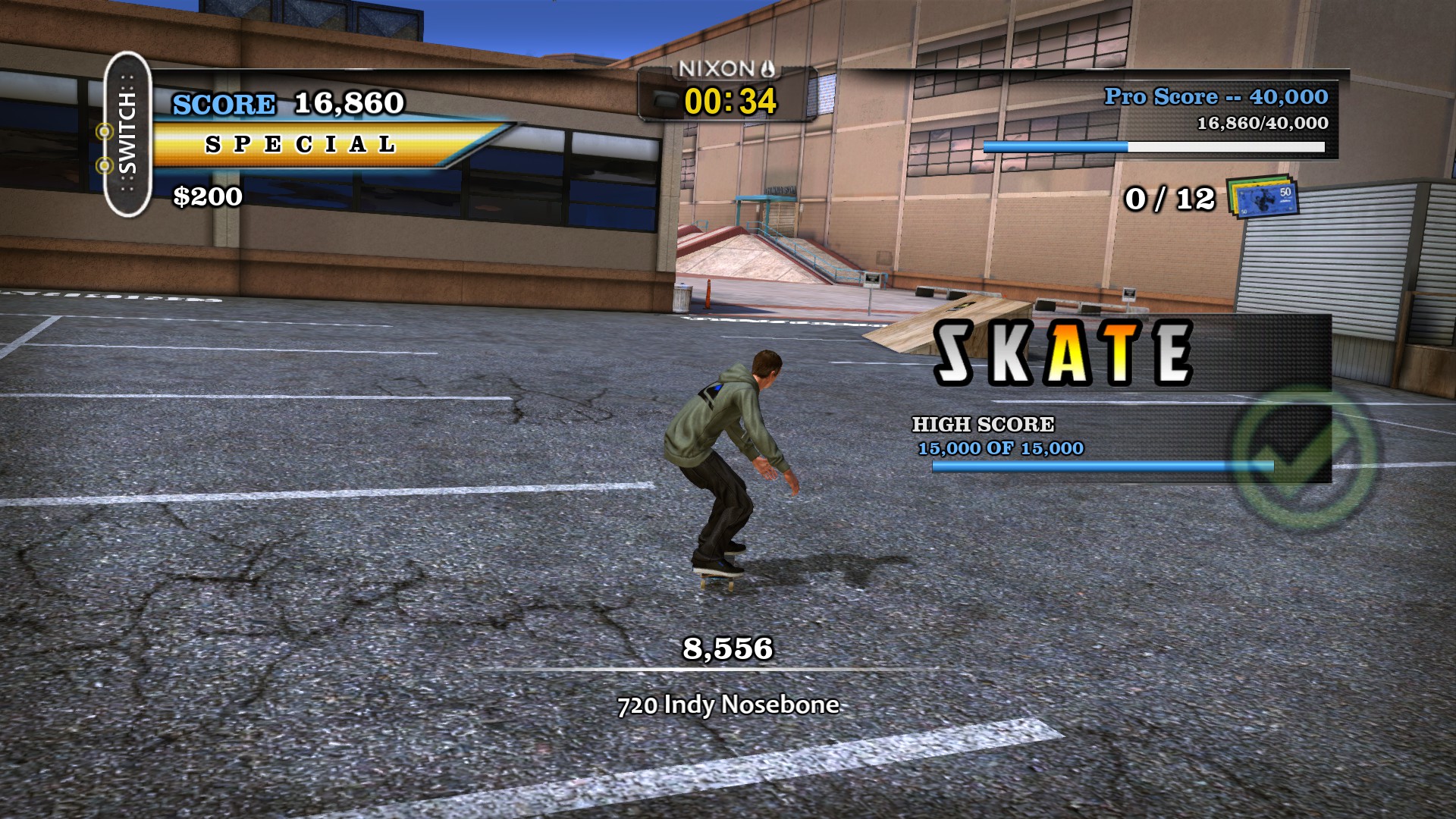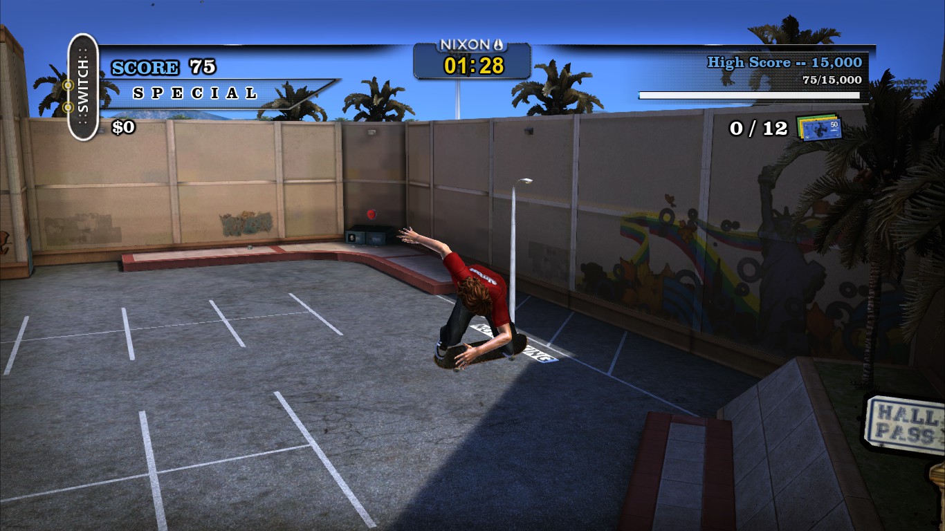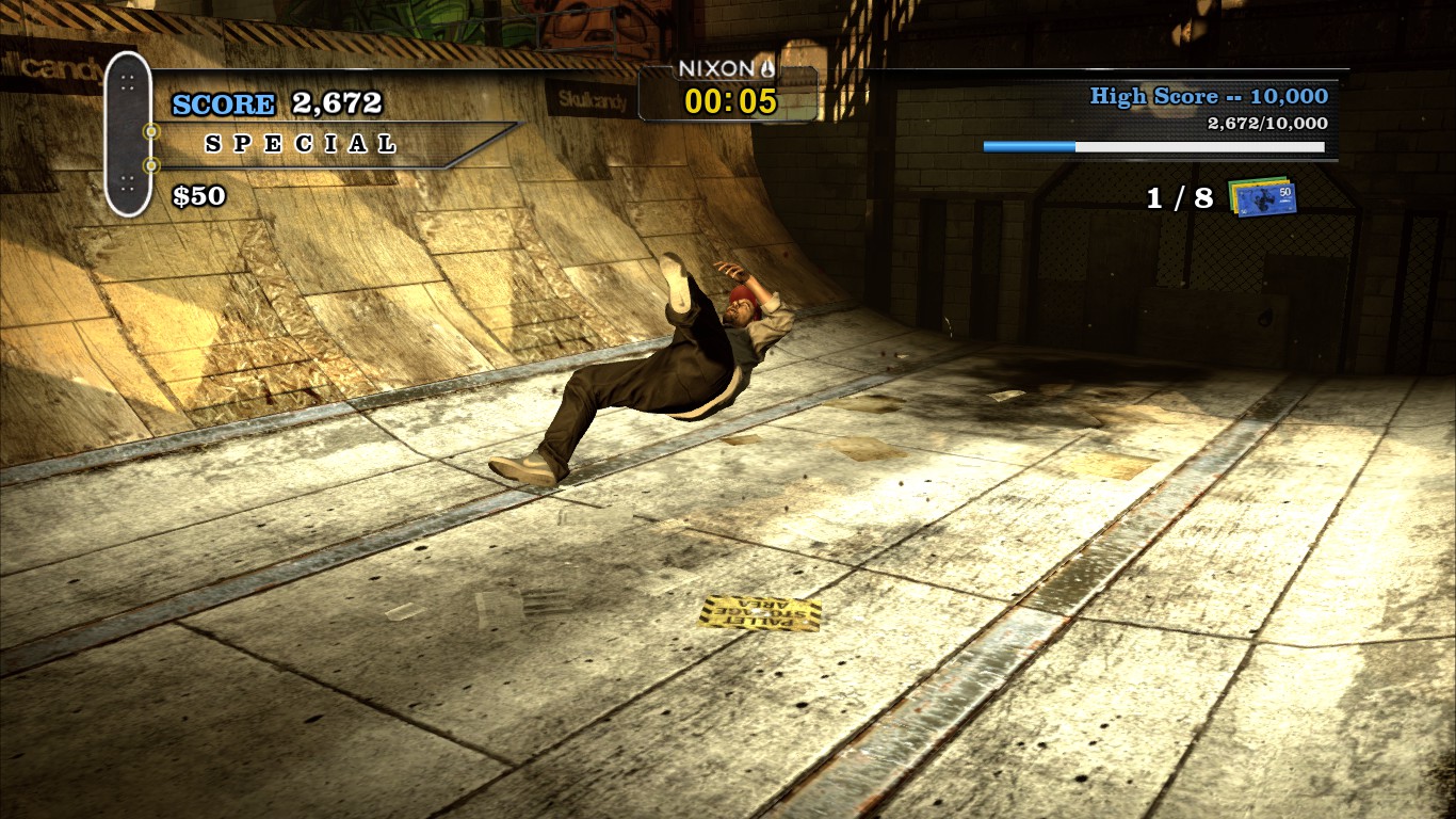 Акцент как и раньше, сделан на двухминутные заезды и выполнения небольших заданий. Например просят собрать слово Skate или найти спрятанные DVD, а в предыдущих частях игры необходимо было искать кассеты. Само собой есть испытания на очки, баллы даются за непрерывное комбо и за всевозможные трюки.