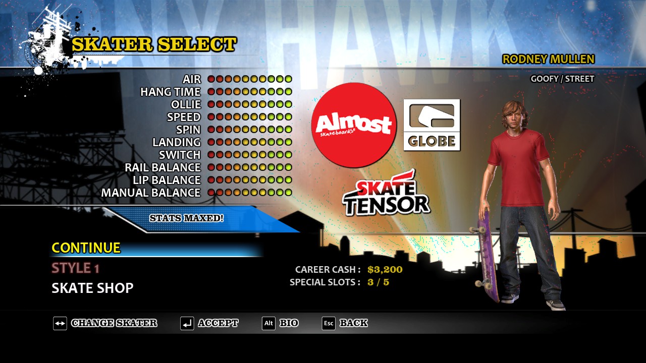 Крутые финты вам придется приобретать в специальном магазине, там же улучшаются характеристики скейтеров. В качестве валюты - доллары. Их можно заработать выполнив карьерные задания. Кроме карьеры, есть свободное катание без ограничения времени.