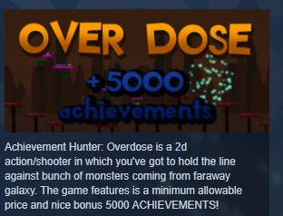 Achievement Hunter: Overdose is a 2d action/shooter in which you´ve got to hold the line against bunch of monsters coming from faraway galaxy.