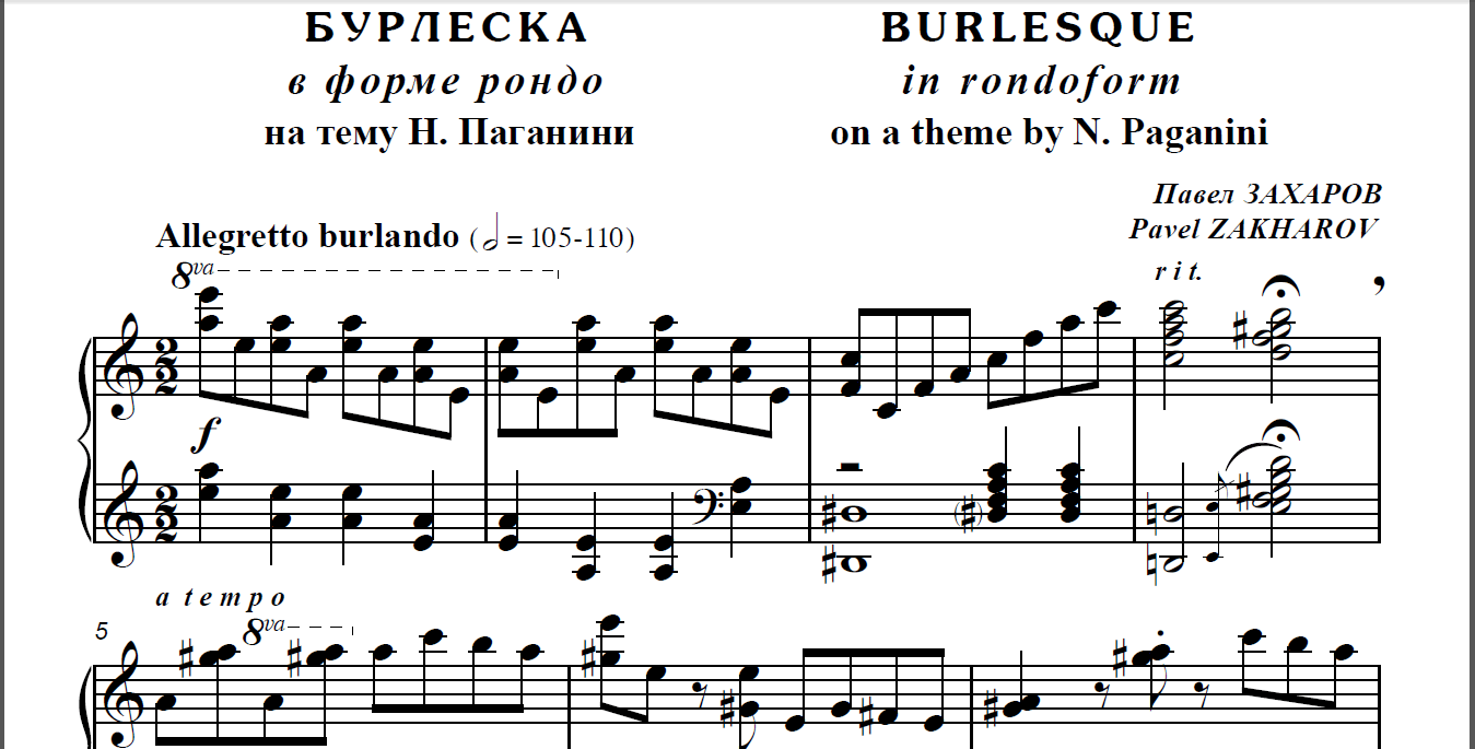 "Бурлеска в форме рондо на тему Н.Паганини" для фортепиано,