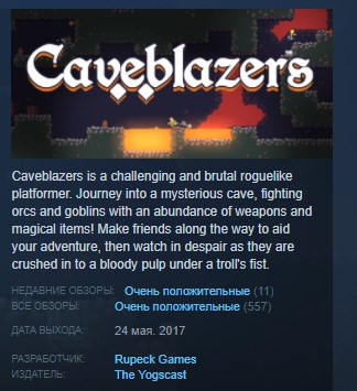 Caveblazers это платформер "рогалик" с фокусом на экшн, действия которого разворачиваются в фэнтезийном мире. Каждая игра уникальна с процедурно генерируемыми уровнями для вашего исследования и огромным количеством предметов, оружий и экипировки.