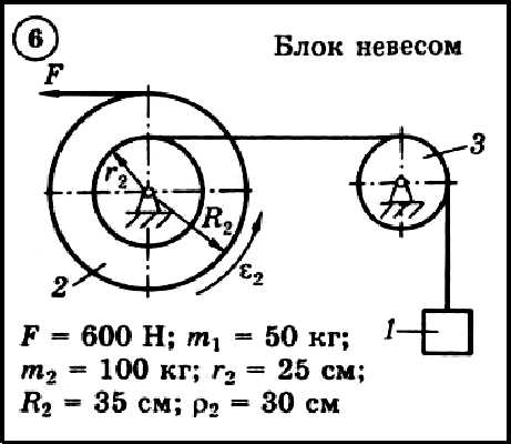 Для приведенной на схеме механической системы, используя уравнения Лагранжа второго рода, определить указанное на схеме угловое ускорение или линейное ускорение. Нити невесомы и нерастяжимы. Принятые обозначения: m - массы тел, R и r - радиусы, ρ - радиус инерции (если он не указан, тело считать однородным цилиндром); при наличии трения указываются: f - коэффициент трения скольжения, fk - коэффициент трения качения.