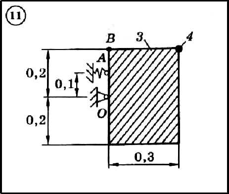 Для приведенной на схеме механической системы определить собственную частоту колебаний. Механическая система, показанная на схеме в положении равновесия, может совершать свободные колебания, вращаясь вокруг горизонтальной оси z, проходящей через неподвижную точку O. Система состоит из жестко скрепленных друг с другом тел: тонких однородных стержней 1 и 2 или однородной пластины 3 и точечного груза 4. Масса 1 м длины стержней равна 25 кг, масса 1 м2 площади пластины - 50 кг, масса точечного груза - 20 кг. Упругие элементы имеют коэффициент жесткости c = 10кН/м. Размеры частей системы указаны в метрах.
