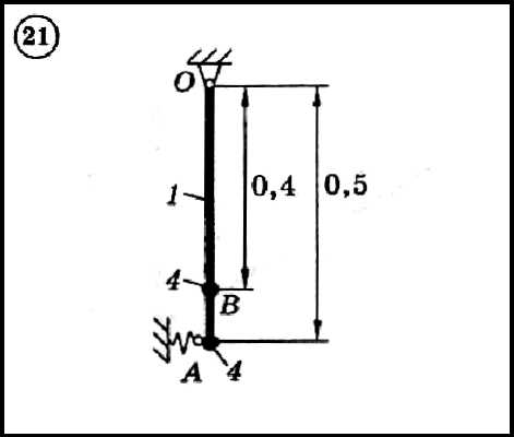 Механическая система снабжается невесомым вязким демпфером, который устанавливается в точке B параллельно оси упругого элемента, и создает силу сопротивления, пропорциональную скорости точки B: R = -bvB, где b = 20 Нс/м - коэффициент сопротивления. Кроме того, на систему начинает действовать вынуждающая сила F = F0 sin pt, где F0 = 60 Н, p = 25 c-1 - амплитуда и частота вынуждающей силы. Вынуждающая сила приложена в точке B и действует параллельно оси упругого элемента. (Если точка B совпадает с точкой А, на схеме указывается B = A). Требуется определить амплитуду чисто вынужденных колебаний системы.