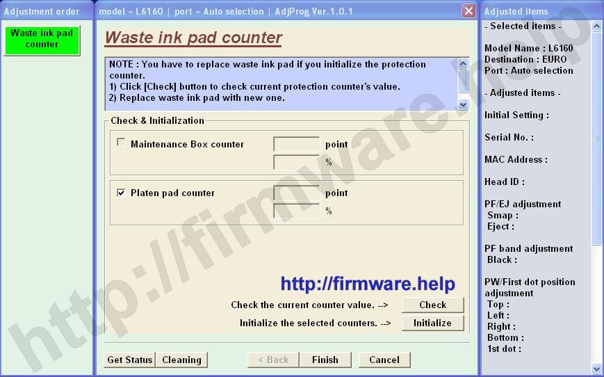 Epson L6160, L6170, L6190 (EURO) Ver.1.0.1 Service Adjustment Program — это сервисная программа для указанных моделей принтеров, программа позволяет сбросить счетчик памперса (отрботка, абсорбер), прописывать ID печатающей головки, делать инициализацию принтера и другие функции.