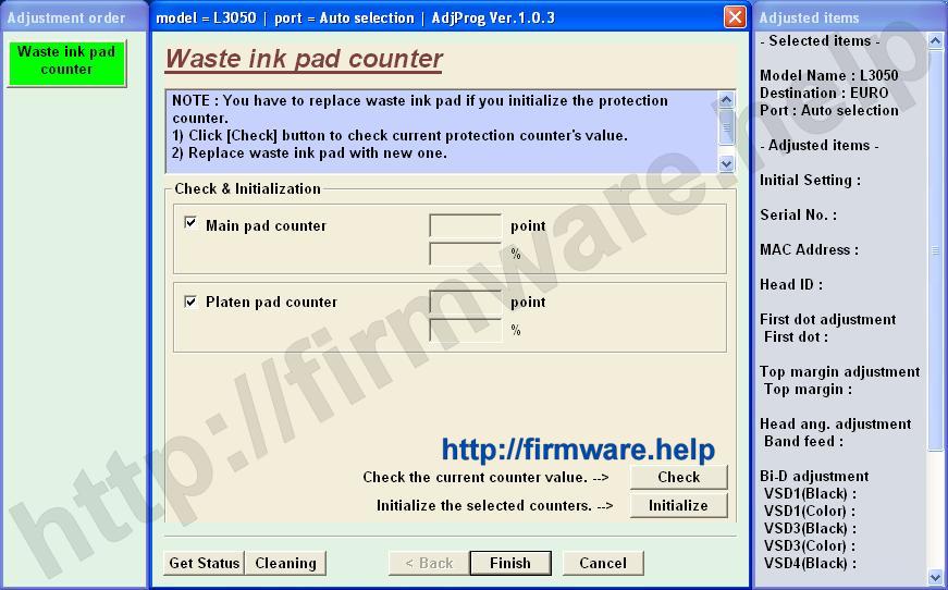 Epson L3050, L3070 (EURO) Ver.1.0.3 Service Adjustment Program — это сервисная программа для указанных моделей принтеров, программа позволяет сбросить счетчик памперса (абсорбер), прописывать ID печатающей головки, делать инициализацию принтера и другие функции.