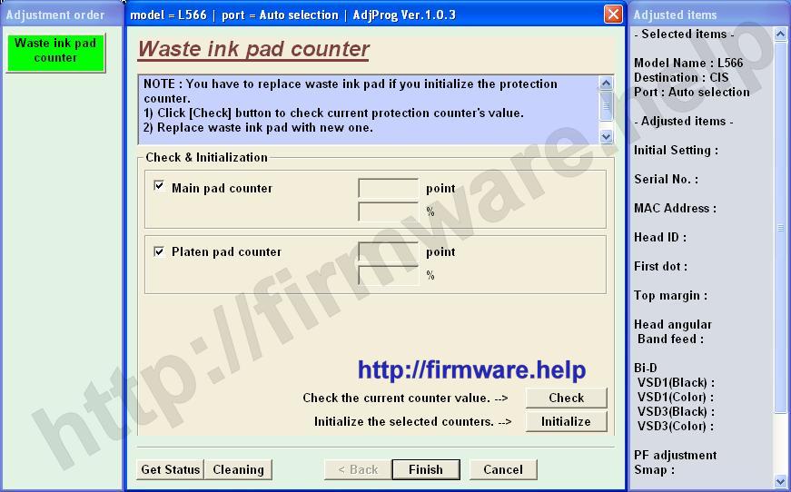 Epson L565, l566 (EURO, CIS) Ver.1.0.3 Service Adjustment Program — это сервисная программа для указанных моделей принтеров, программа позволяет сбросить счетчик памперса (абсорбер), прописывать ID печатающей головки, делать инициализацию принтера и другие функции.