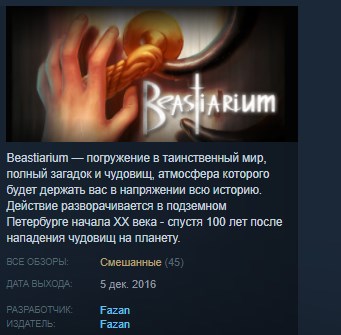 Beastiarium — погружение в таинственный мир, полный загадок и чудовищ, атмосфера которого будет держать вас в напряжении всю историю.