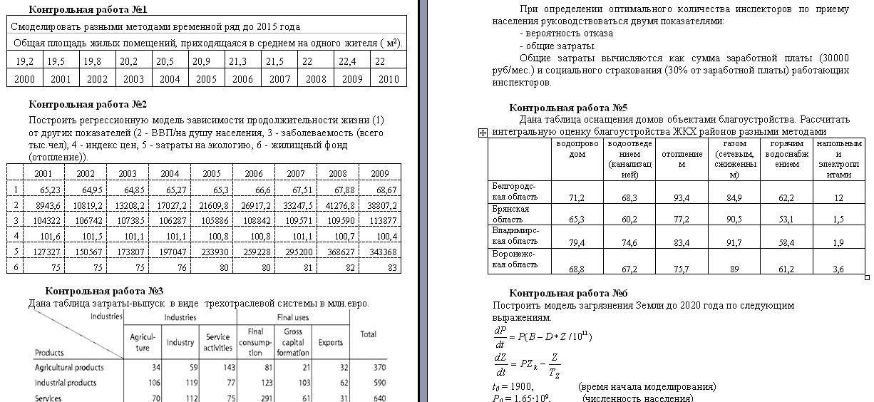 Основы математического моделирования социально-экономических процессов, контрольная, 6 заданий