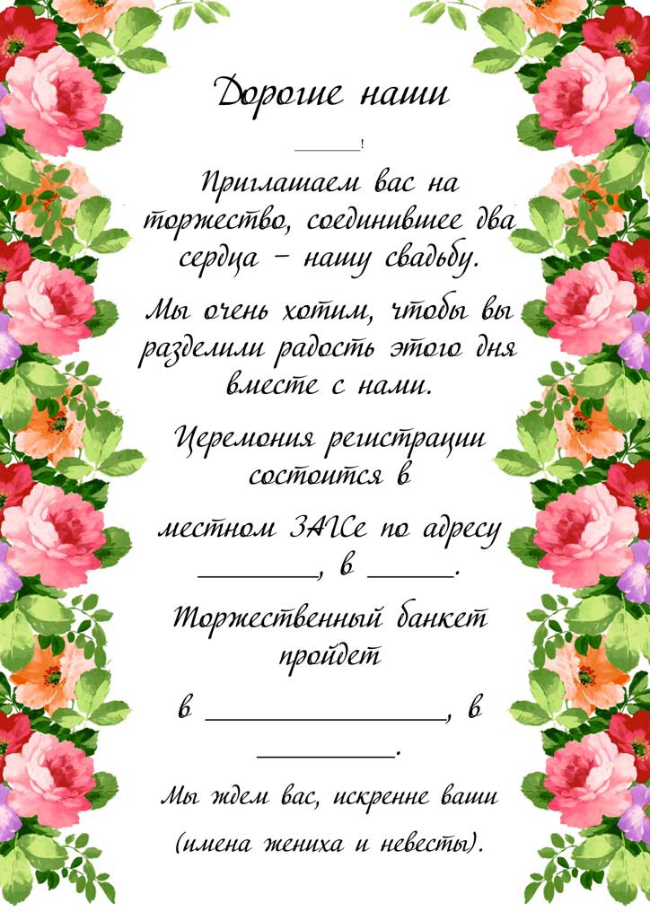 Красивый шаблон приглашения на свадьбу в формате Microsoft Word.