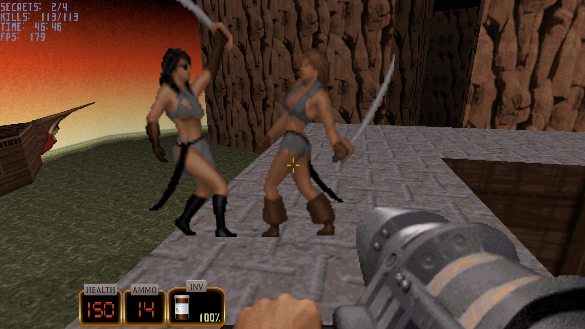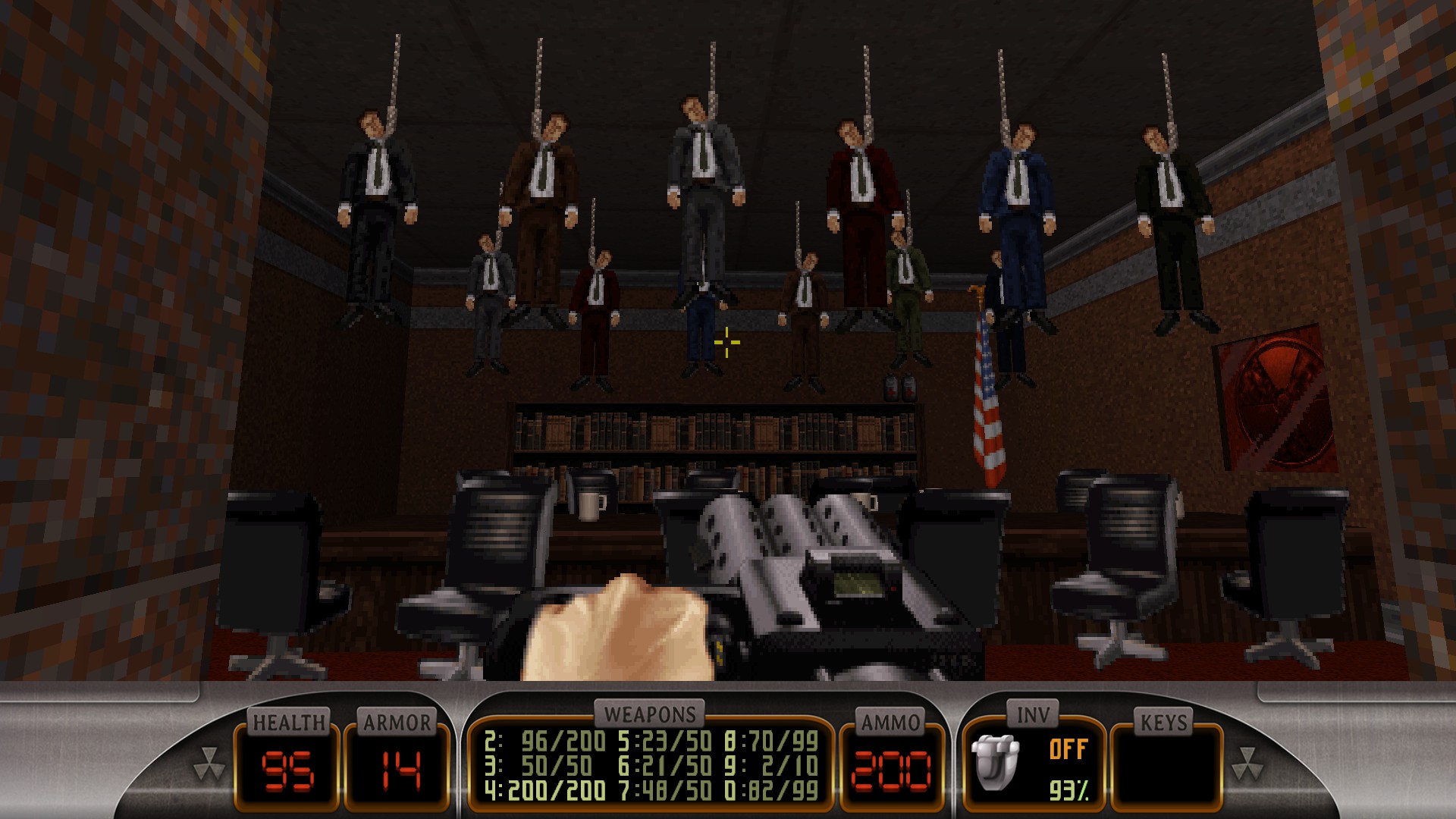 Duke Nukem 3D — культовая компьютерная игра в жанре шутера от первого лица, созданная компанией 3D Realms (подразделение Apogee) в 1996 году. Duke Nukem 3D является логическим продолжением игр серии Duke Nukem, но если первые две игры из серии были двухмерными платформерами, то третья часть выполнена в популярном на то время стиле Doom (псевдотрёхмерные коридоры, вид от первого лица, сражения с применением различного вида холодного, огнестрельного, а также вымышленного оружия). Фактически, Duke Nukem 3D был ответом компании Apogee на серию игр Doom, а также на Heretic и Hexen от компании id Software, с которой у Apogee были давние конкурирующие отношения ещё со времён Wolfenstein 3D. Но новая, трёхмерная часть Duke Nukem не стала очередным клоном Doom, она сумела составить конкуренцию вышедшему в то же время более технически совершенному Quake. Более того, она принесла в игровую индустрию столько нововведений и неожиданных решений, что по праву может оспорить звание прародителя многих современных шутеров, включая серию игр Half-Life.