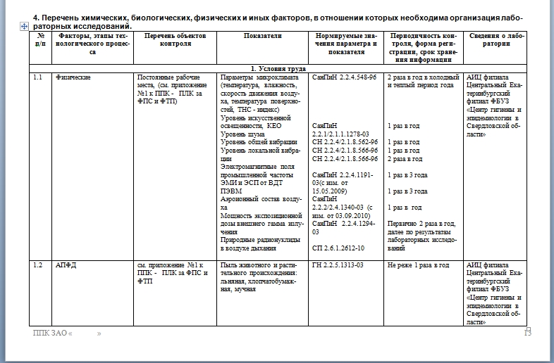 Образец (в формате Word) обновлена на 2018г Программа производственного контроля (гостиница) около 50 страниц. Сделана для большой гостиницы. Разделы программы: паспортные данные; перечень официально изданной НД (актуализация 2018 г); функции ответственных лиц за производственный контроль; объекты производственного контроля, в отношении которых необходима организация лабораторных исследований и испытаний (в том числе, в отношении: помещений, химических физических биологических факторов, продукции предприятия общественного питания, технологических процессов, продуктов, водоснабжения, охраны окружающей среды); перечень должностей работников, подлежащих медицинским осмотрам и вакцинации; работники, подлежащие предварительным при поступлении на работу и периодическим профилактическим осмотрам декретированных контингентов; перечень должностей работников, подлежащих профессиональной гигиенической подготовке и аттестации; вакцинопрофилактика; мероприятия, предусматривающие обоснование безопасности для человека и окружающей среды продукции и технологии ее производства, критериев безопасности..; карта контрольных критических точек технологического процесса на предприятии; перечень форм учета и отчетности по вопросам, связанным с осуществлением производственного контроля; перечень возможных аварийных ситуаций; мероприятия, необходимые для осуществления эффективного контроля за соблюдением санитарных правил и гигиенических нормативов...; программа лабораторного контроля; Программа контроля качества ВОДЫ