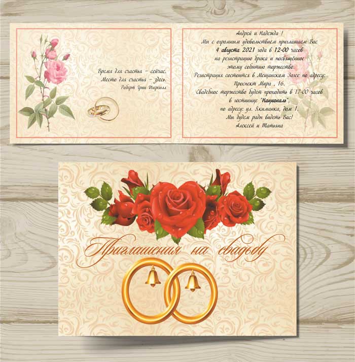 Красивый шаблон приглашения на свадьбу в формате Microsoft Word c текстом,