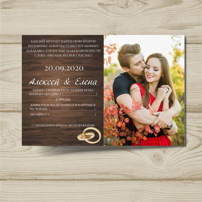 Красивый шаблон приглашения на свадьбу в формате Microsoft Word c фото.