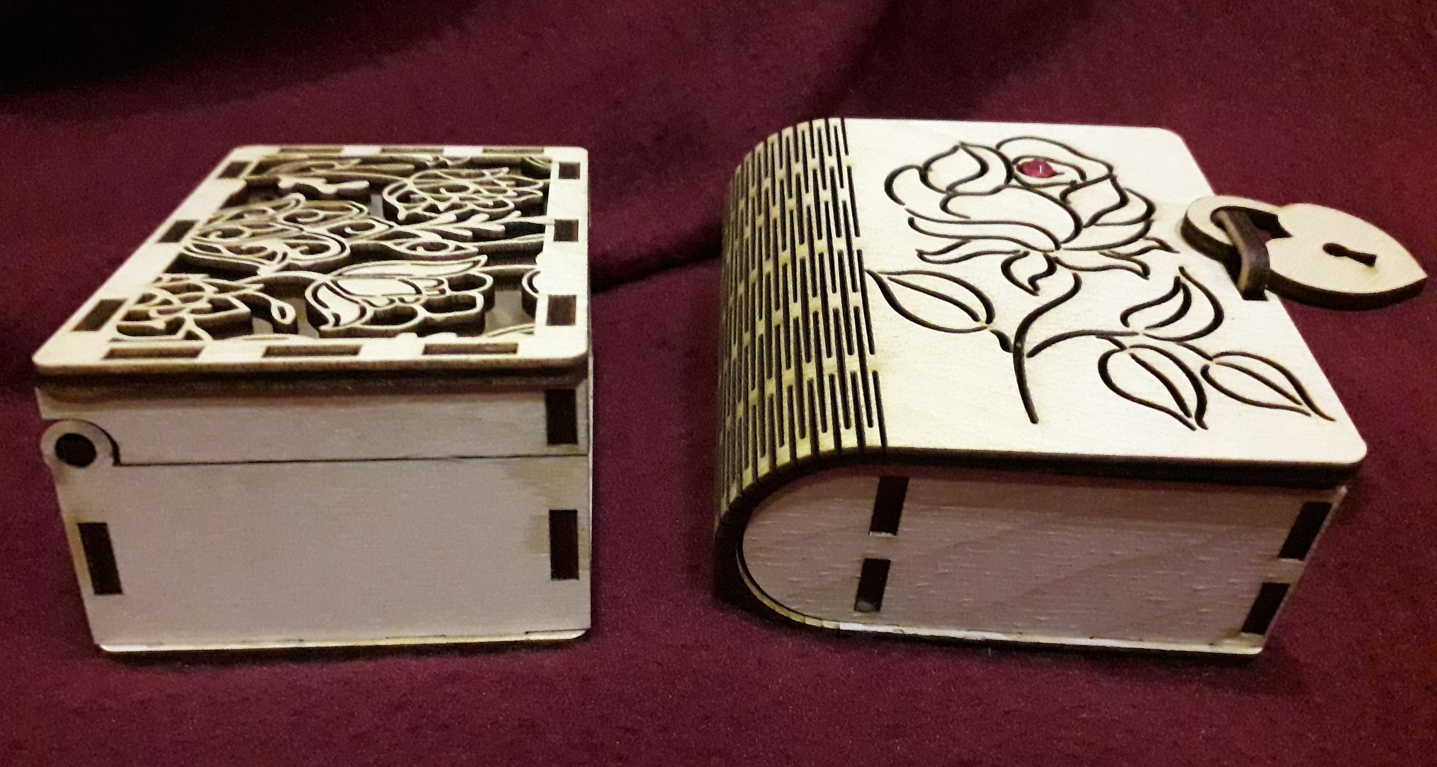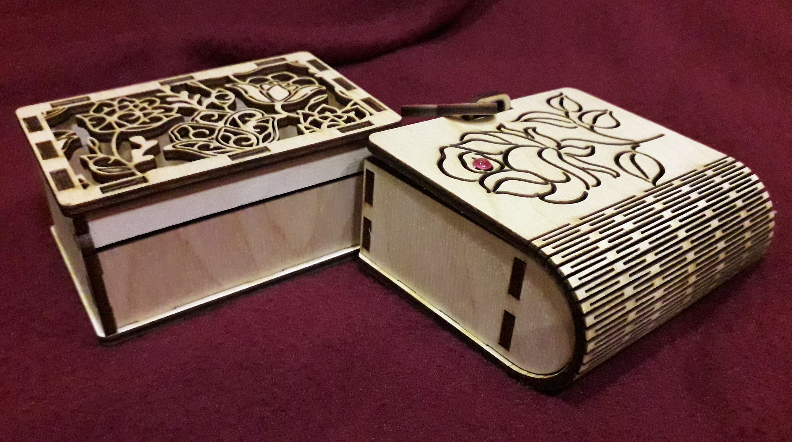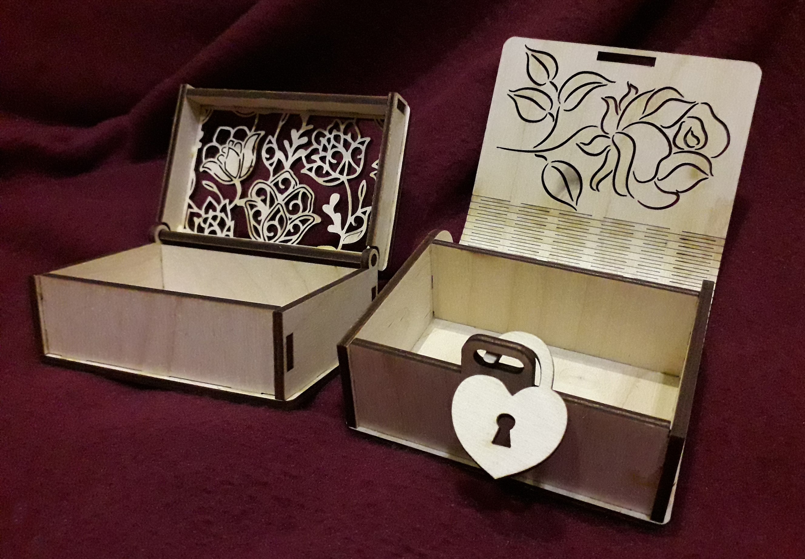Мини-шкатулки для хранения драгоценностей или чего-нибудь другого. Это векторный макет для лазерного или фрезерного резака, подготовленный для толщины материала 3 и 4 мм.