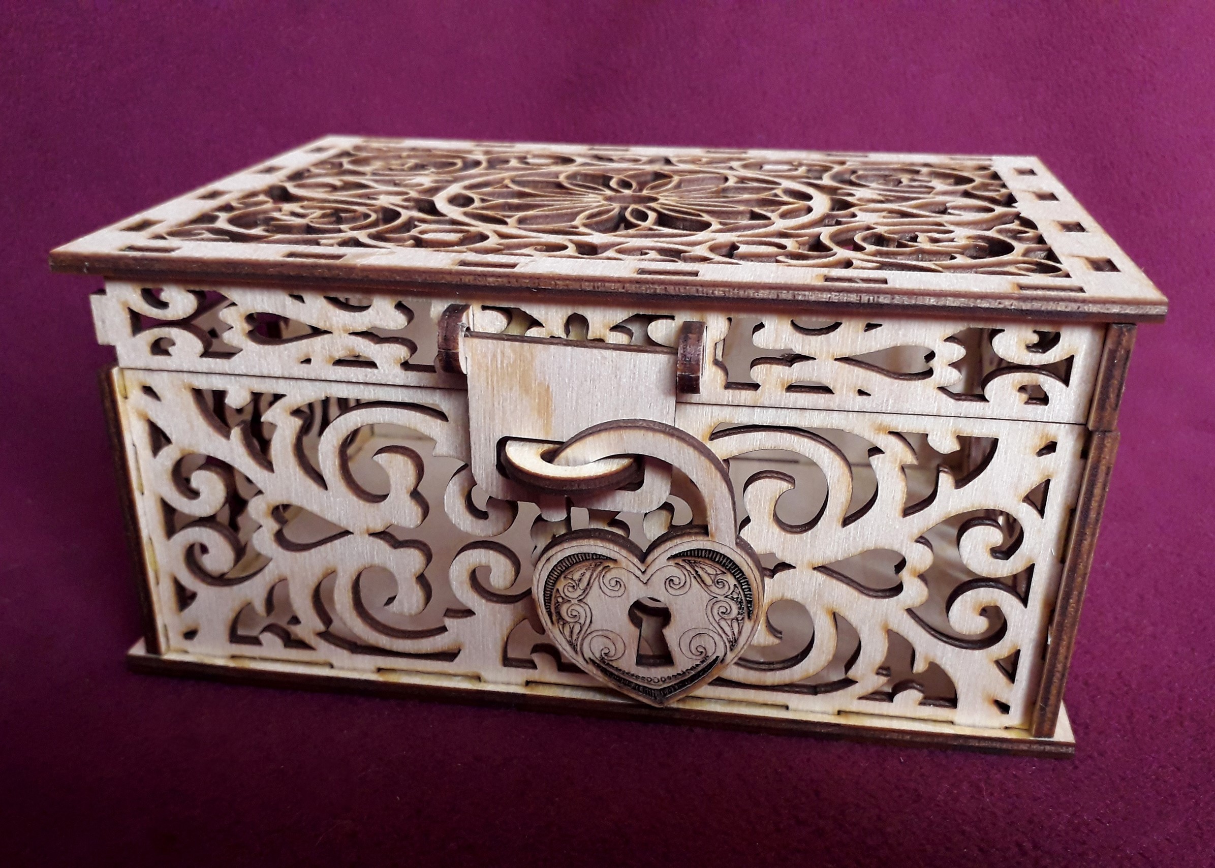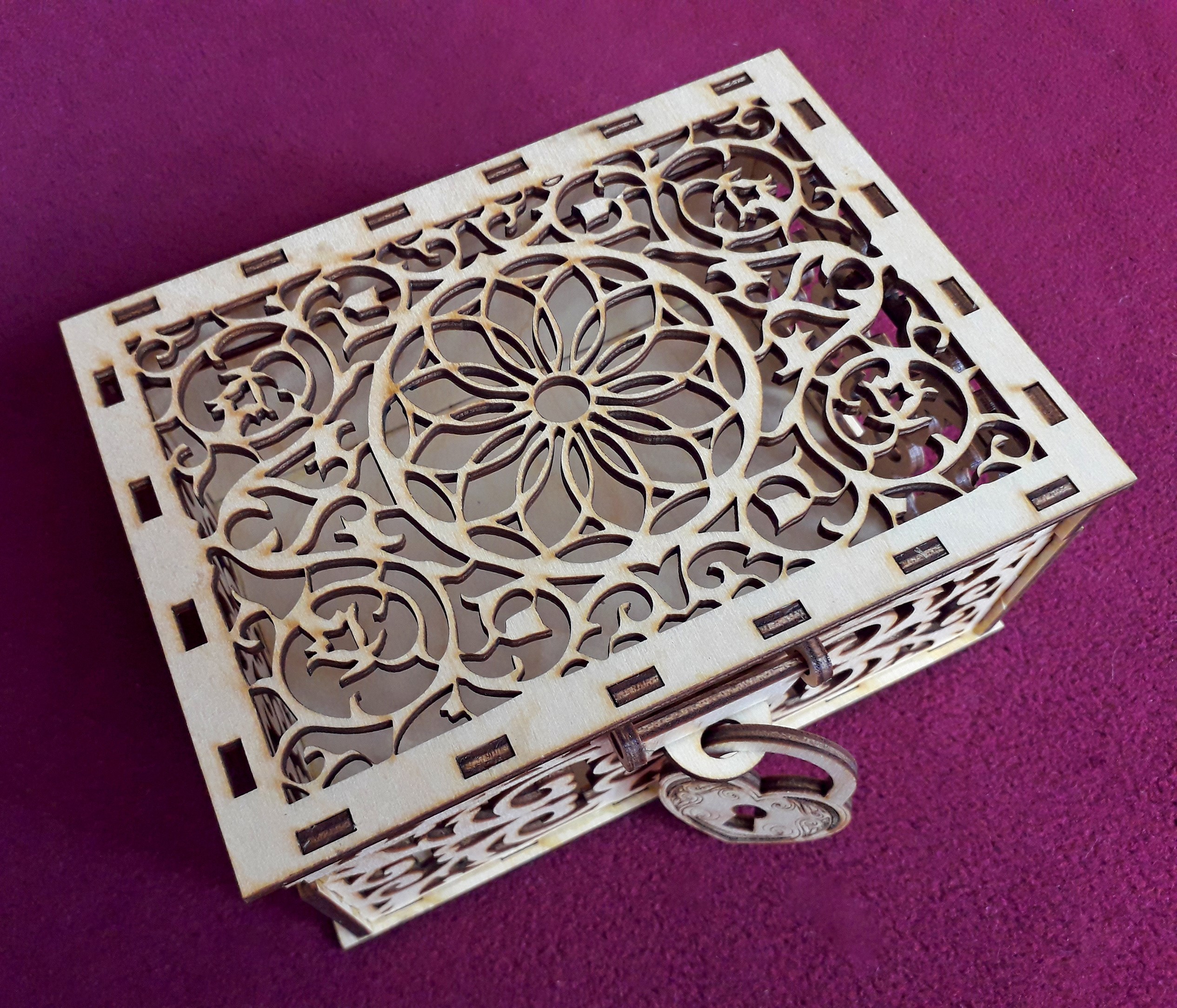 Шкатулка для хранения драгоценностей или чего-нибудь другого. Это векторный макет для лазерного или фрезерного резака, подготовленный для толщины материала 3 и 4 мм.