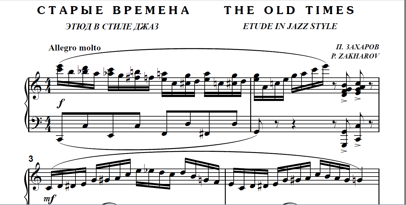"Старые времена" (джазовый этюд) для фортепиано, ноты,