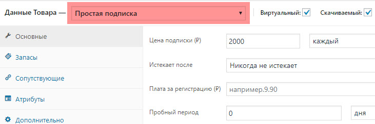 При создании продукта подписки вы можете сделать продукт загружаемым, виртуальным или физическим, а платежи за продление еженедельно, ежемесячно или ежегодно. Можно ограничивать продукт одним скачиванием и даже взимать плату только один раз.