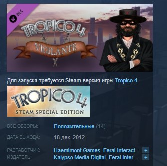 Внимание! Для запуска требуется наличие игры Tropico 4.