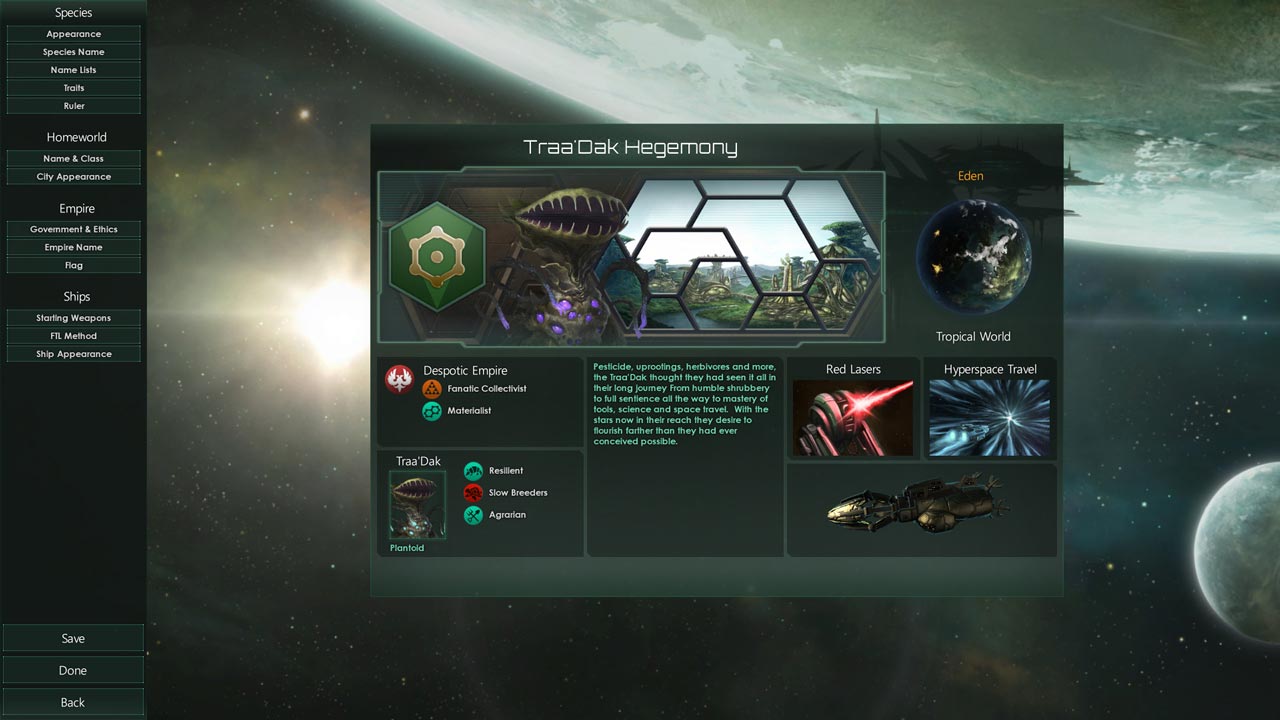 Как подсказывает название, Stellaris. Plantoids Species Pack добавляет в Stellaris к растениеподобным расам, чьи семена распространяются по всей галактике, пуская корни новых цивилизаций на новых планетах.