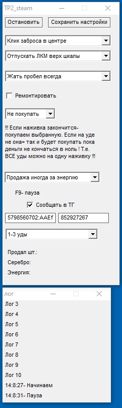 "Продажа за серебро": продаём только за серебро. "За энергию"- продаём за энергию. "Иногда за энергию"- продажа за энергию если она "стоит" больше и при продаже не превысит 1000 энергии.