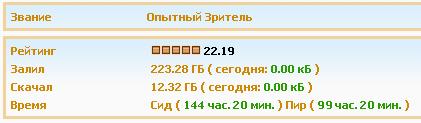 ► Звание на сайте: ОПЫТНЫЙ ЗРИТЕЛЬ, количество доступных раздач для скачивания с профиля за 1 сутки – 8 торрентов.