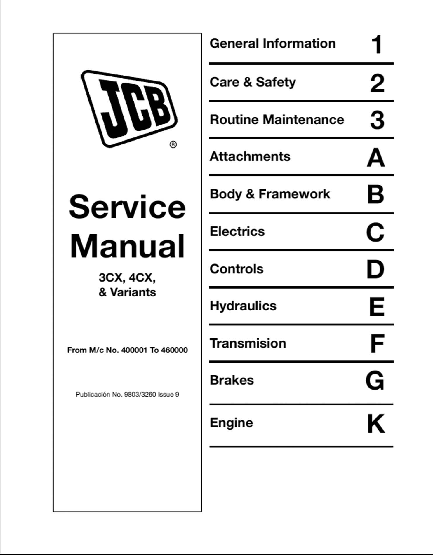 Руководство по обслуживанию экскаватора-погрузчика JCB 3CX, 4CX (400001 to 460000)