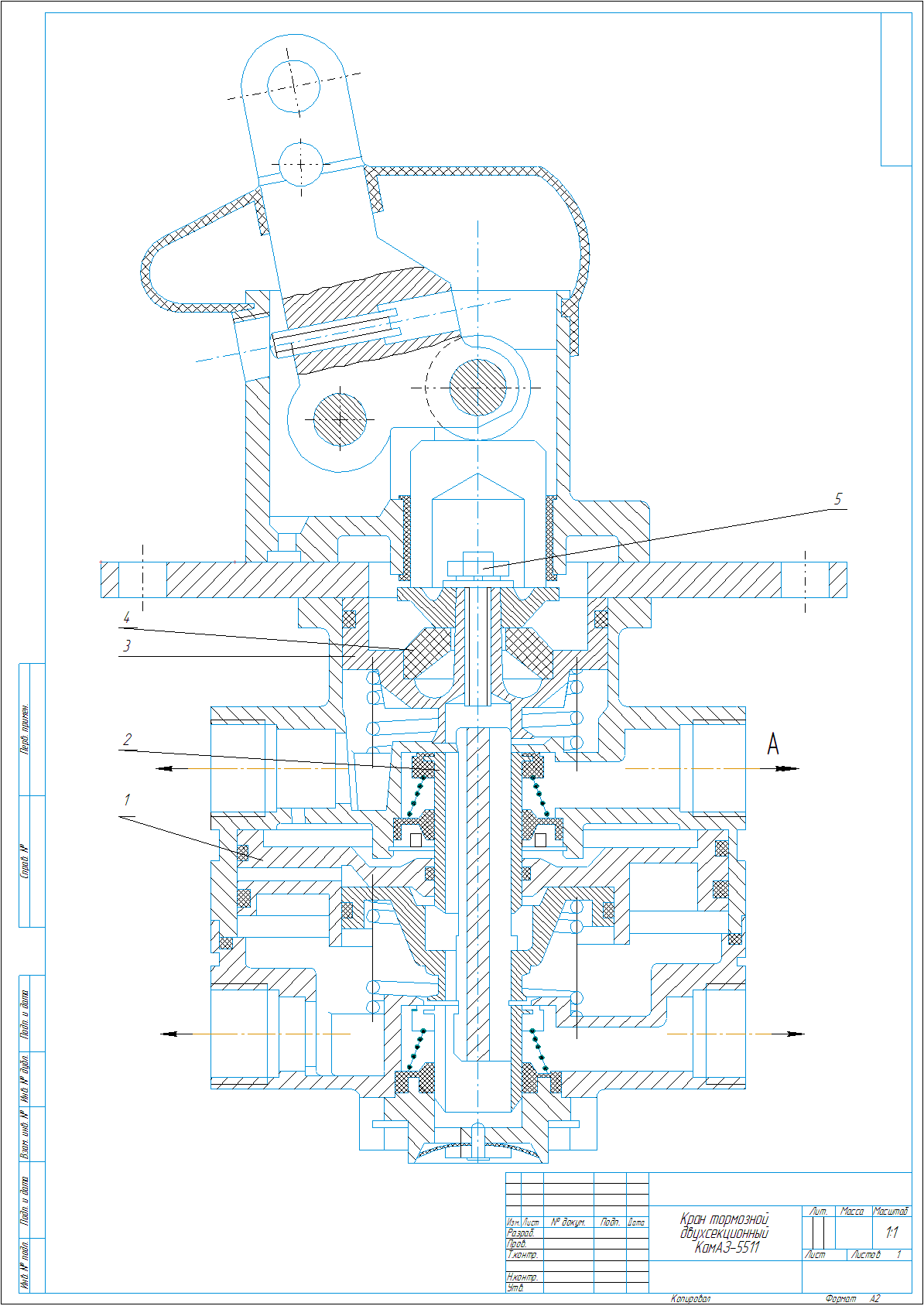 Чертеж кран тормозной двухсекционный автомобиля КАМАЗ 5511