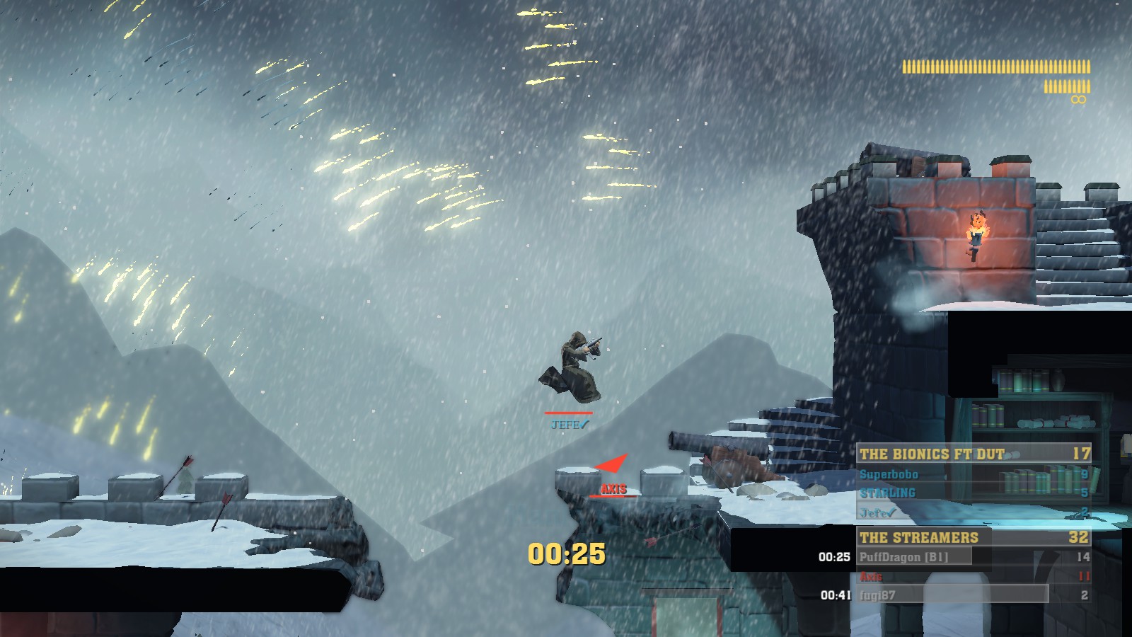 Разработчики предоставили игрокам обширный выбор различного оружия, среди которого вы обязательно встретите пистолеты, дробовики, штурмовые винтовки, катаны, гранаты, световые мечи, реактивные рюкзаки, гауссовые ружья, и много других пушек! В плане оружия никаких ограничений нет: можно начать битву с гранатомета, а закончить с ножом в руке... Геймплей в игре напоминает чем-то платформеры, но все же главной особенностью игры остается мультиплеер, который поддерживает режимы до 8 игроков.