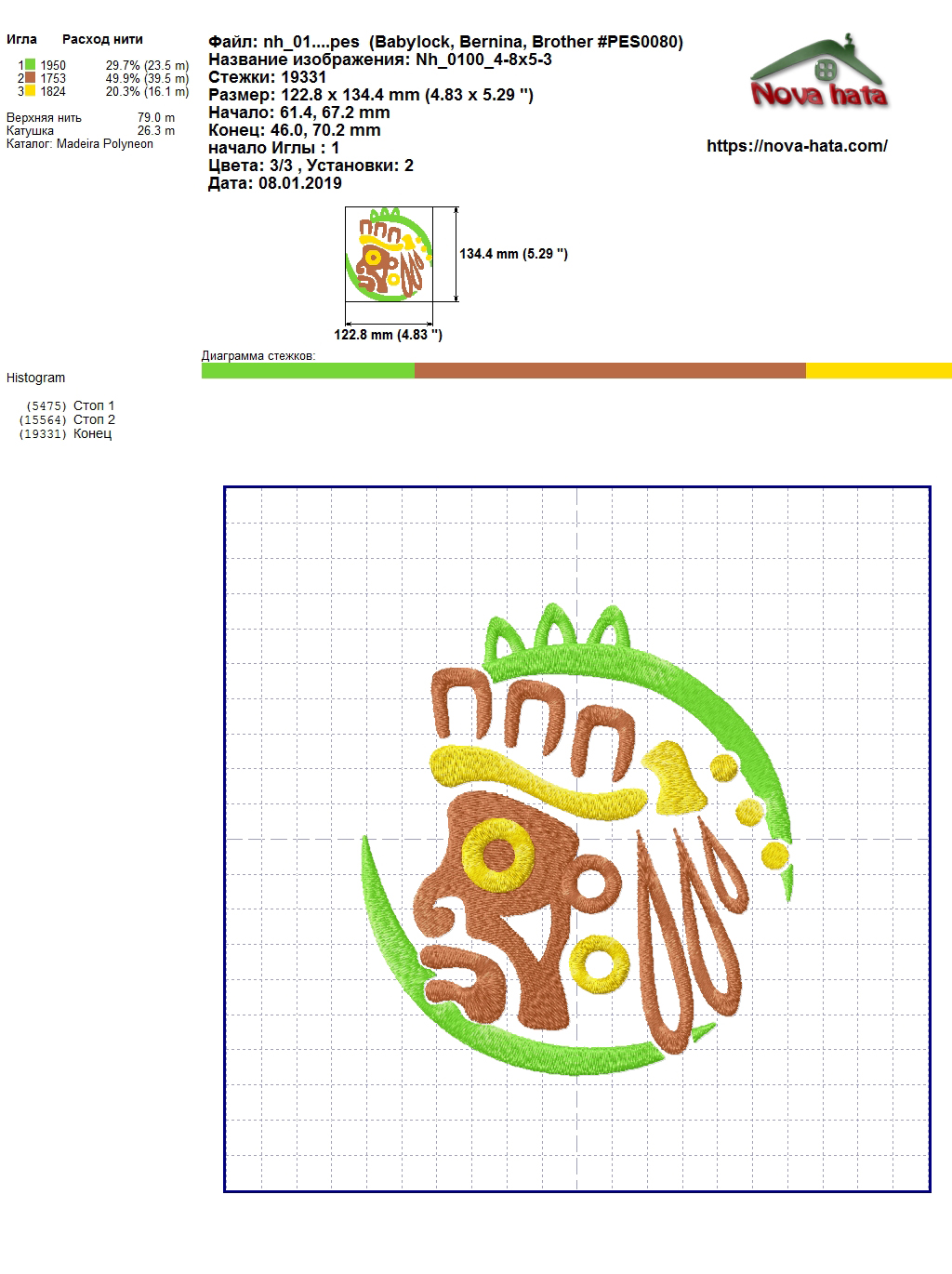 В архиве также содержатся: полное описание файла, цветовая карта нитей.