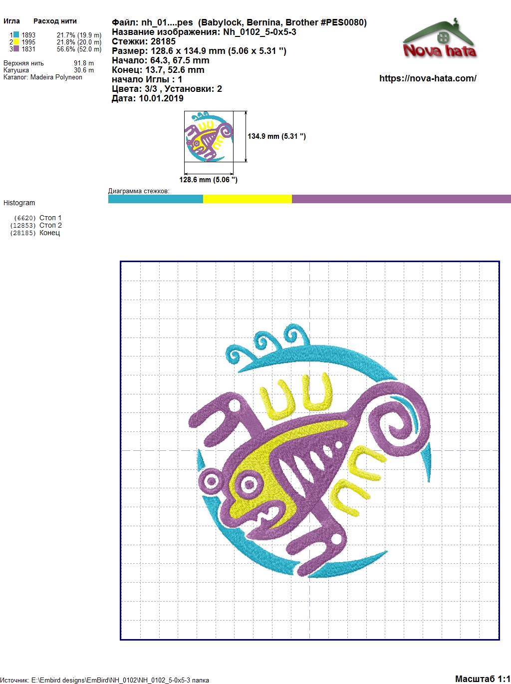В архиве также содержатся: полное описание файла, цветовая карта нитей.