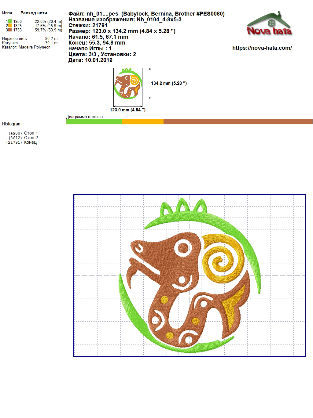 В архиве также содержатся: полное описание файла, цветовая карта нитей.