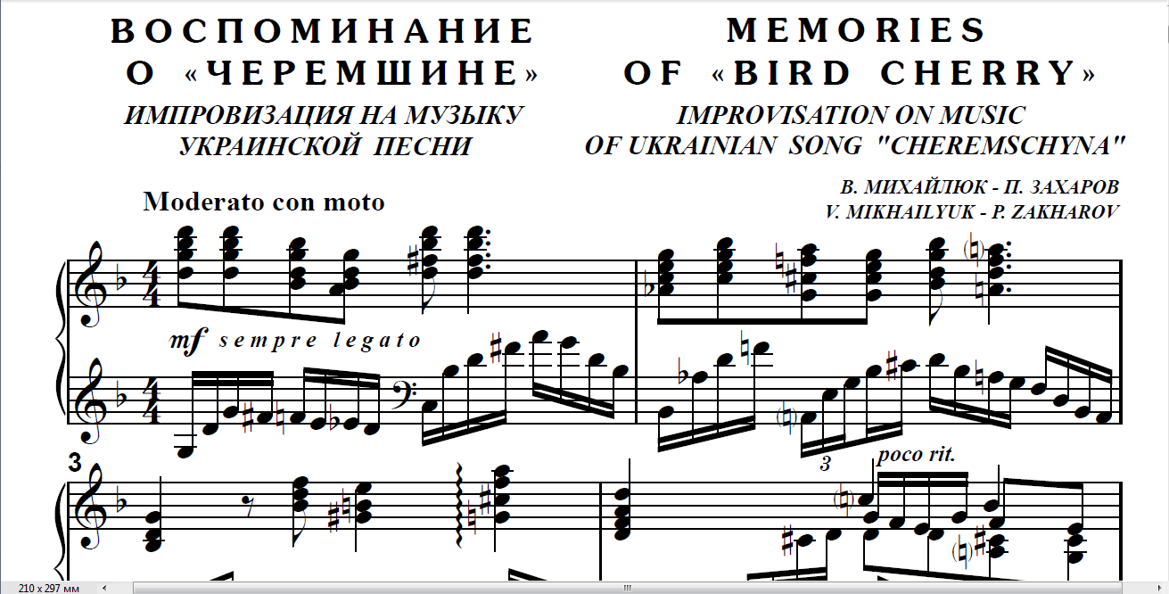 "Воспоминание о "Черемшине" импровизация на музыку украинской песни "Черемшина" (В.Михайлюк),