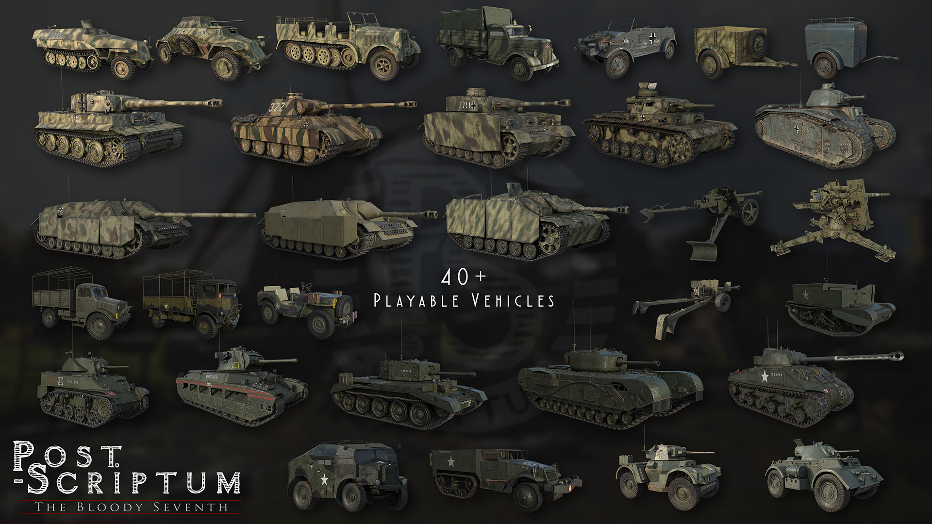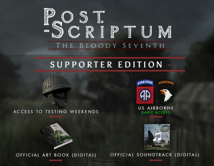 Post Scriptum обеспечивает полное погружение в атмосферу Второй мировой войны за счет исторической достоверности, масштабности боев, требовательности к игрокам и акценте на командном взаимодействии и общении между ними. Игроки окажутся в Голландии и займут место участников операции “Market Garden”. Эта операция представляла собой массированное наступление объединенных сил воздушно-десантных войск Союзников, задачей которого был захват ключевых мостов района, в то время как 30-й корпус Британской Армии должен был укрепить их позиции, совершив марш по 69-му шоссе. Однако затягивающийся процесс зачистки территории от севера Бельгии до нидерландского Неймегена вынудил 1-ю британскую воздушно-десантную дивизию удерживать Арнем в одиночку дольше, чем планировалось. Провал воссоединения 30-го корпуса и воздушно-десантных сил привел к тому, что последний, седьмой мост в Арнеме был потерян для Союзников.“The Bloody Seventh” — это название, подчеркивающее основную цель нашего проекта, а также характеризующее общие настроения, царившие среди британских парашютистов, вынужденных стоять насмерть в напрасной надежде на то, что сухопутные части смогут пробиться к ним через Нижний Рейн.Игроки смогут выбрать между британской воздушно-десантной дивизией, британским 30-м корпусом, а также несколькими видами вооруженных сил Третьего Рейха, например Вермахтом и войсками СС. Это редкая возможность почувствовать на себе ожесточенность сражения, такого, каким была Битва за Арнем, проходившая на территории ферм, лесов, деревень и городских райнов. Каждый участок был тщательно воспроизведен с помощью архивных данных, которые разнились от уличных фотографий до пленок аэрофотосъемки. Неважно, выпрыгиваете ли вы из самолета, ведете грузовик с боеприпасами на передовую или управляете танком, вам не захочется покидать то поле боя, которое ждет вас в этом масштабном воплощении одного из ключевых событий Второй мировой войны, прежде не становившегося центральной темой многопользовательских игр.