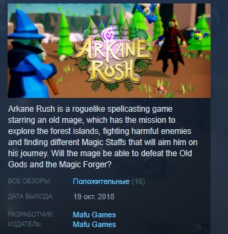 Arkane Rush is a roguelike spellcasting game starring an old mage, which has the mission to explore the forest islands, fighting harmful enemies and finding different Magic Staffs that will aim him on his journey. Every magic staff has a combination of two unique powers that the mage will have to use wisely against the horde of enemies.