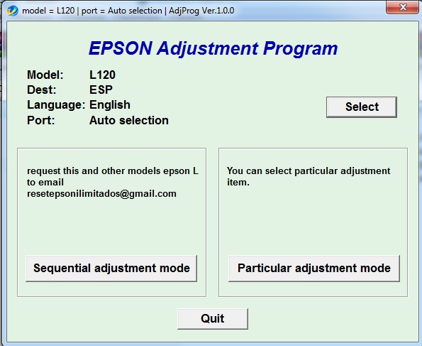Adjustment program Epson L120 - это сервисная программа для указанных моделей принтеров, программа позволяет сбросить счетчик памперса (отрботка, абсорбер), прописывать ID печатающей головки, делать инициализацию принтера и другие функции.