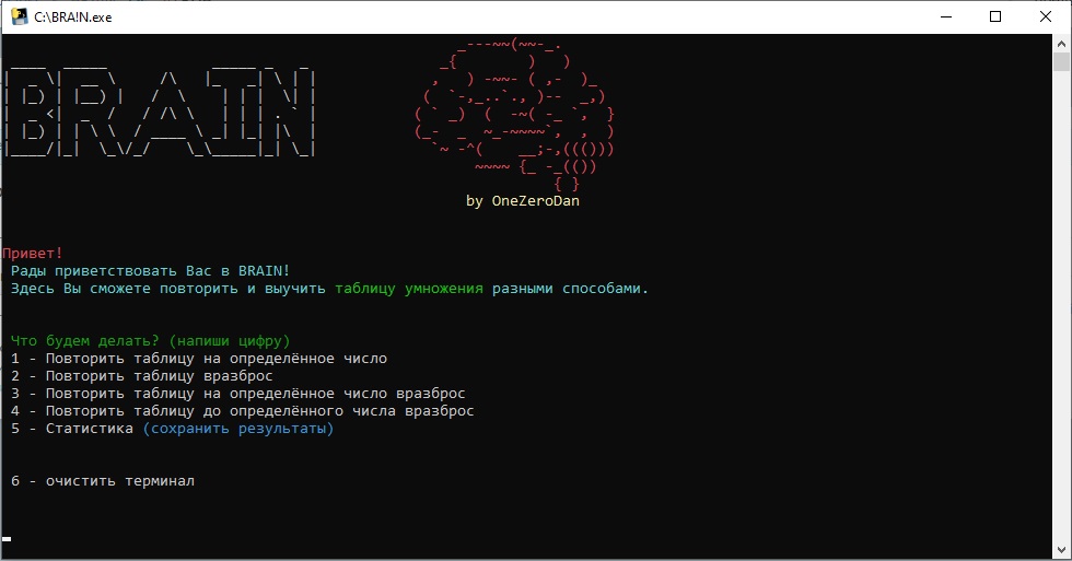 С помощью данной программы ребёнок сможет быстро и легко выучить таблицу умножения благодаря четырём различным режимам (и даже почувствовать себя настоящим программистом, ведь программа исполняется в командной строке). Присутствует модуль обновления (программа будет обновляться сама).