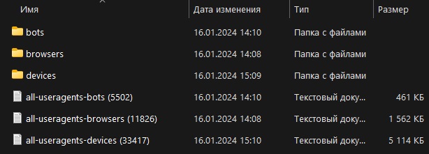 База содержит более 45000 актуальных USER AGENT.