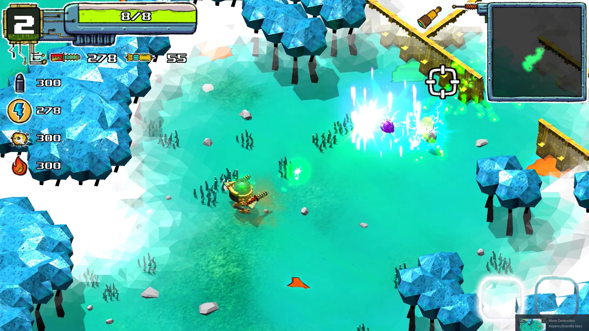 Moss Destruction is a tough-as-a-nail rogue-lite, twin stick action shooter, with a well-balanced ranking up system and sweet, hand-crafted visuals.