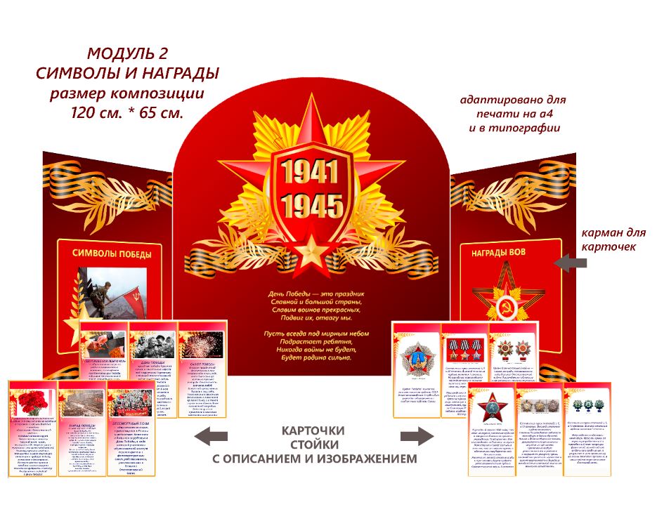 ✅Модуль 2 "Символы победы и награды ВОВ",дополнен карточками стойками с изображением ,примерным конспектом НОД и презентацией.Модуль адаптивен ,так же возможно собственное дополнение экспонатами.