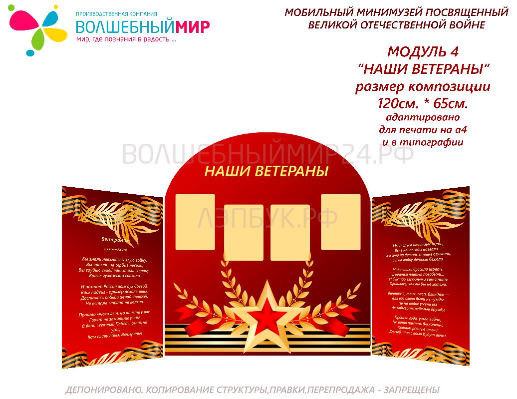 ✅Модуль 4 "Наши ветераны".Модуль адаптивен ,так же возможно собственное дополнение экспонатами.