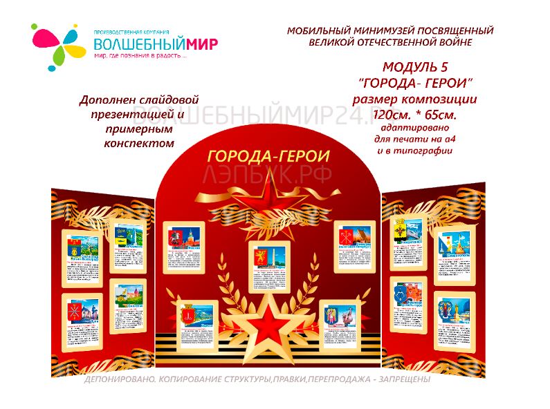 ✅Модуль 5 "Города-герои",дополнен примерным конспектом НОД и презентацией.Модуль адаптивен ,так же возможно собственное дополнение экспонатами.