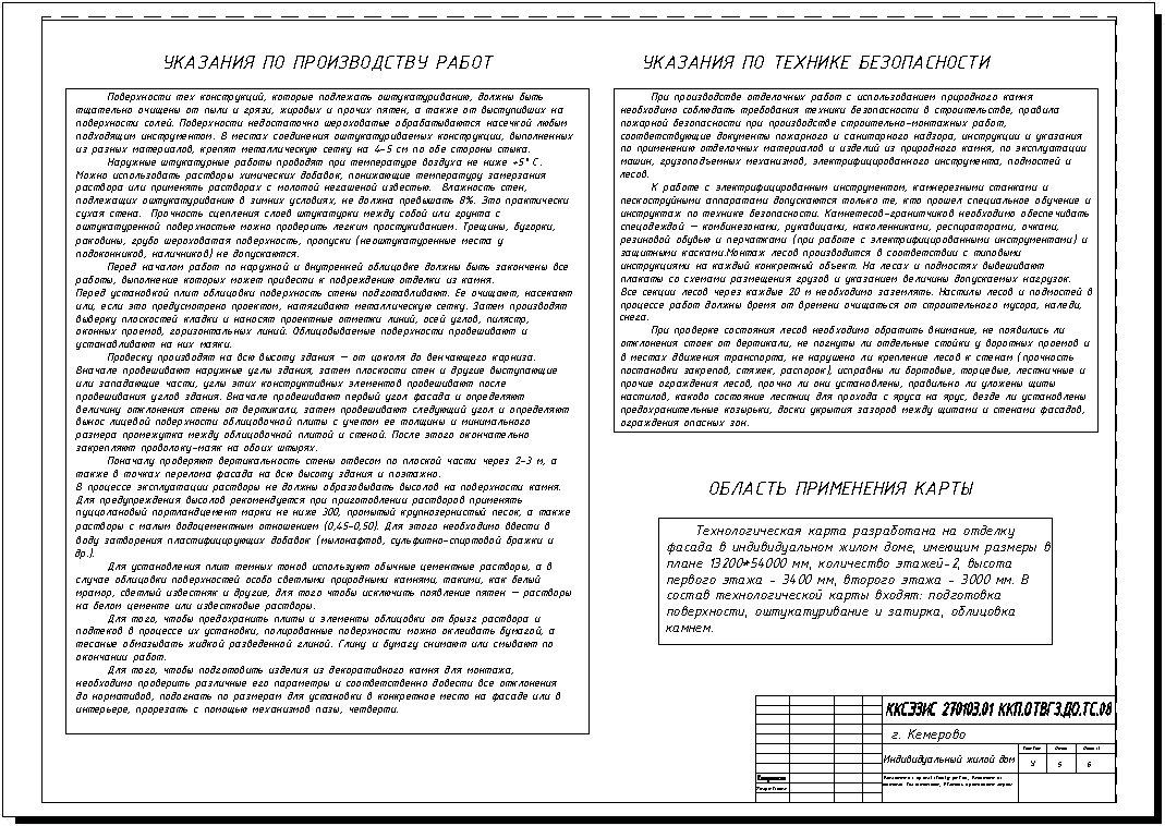 Лист 5. Особенности технологии возведения гражданских зданий: Указания по производству работ, Указание по технике безопасности, Область применения карты.