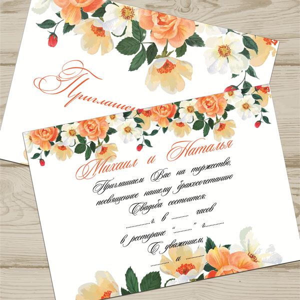 Макет приглашения был сделан в размере А4 (210х297 мм),Вы легко можете изменить размер на свой.