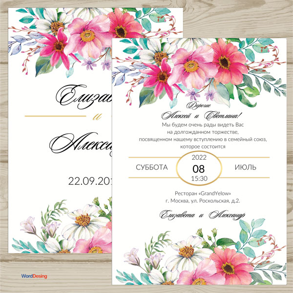 Макет приглашения был сделан в размере А4 (210х297 мм),Вы легко можете изменить размер на свой.